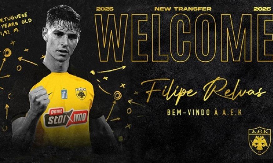 Η ΠΑΕ ΑΕΚ ανακοινώνει την απόκτηση με μεταγραφή από τη Βιτόρια Γκιμαράες, του Πορτογάλου κεντρικού αμυντικού Φιλίπε Ρέλβας (Filipe do Bem Relvas Vito Oliveira).