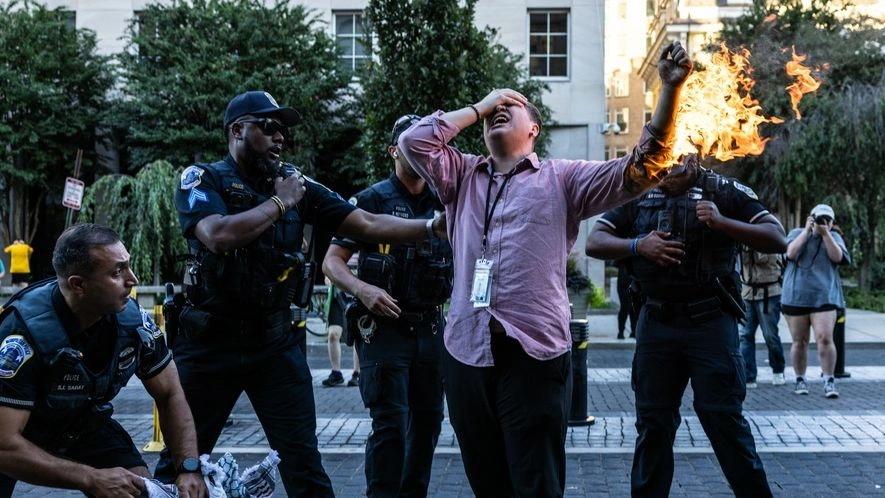 Συναγερμός σήμανε σε διαδήλωση ενάντια στον πόλεμο στη Γάζα που πραγματοποιήθηκε στην Ουάσινγκτον, όταν ένας άνδρας επιχείρησε να αυτοπυρποληθεί έξω από τον Λευκό Οίκο.