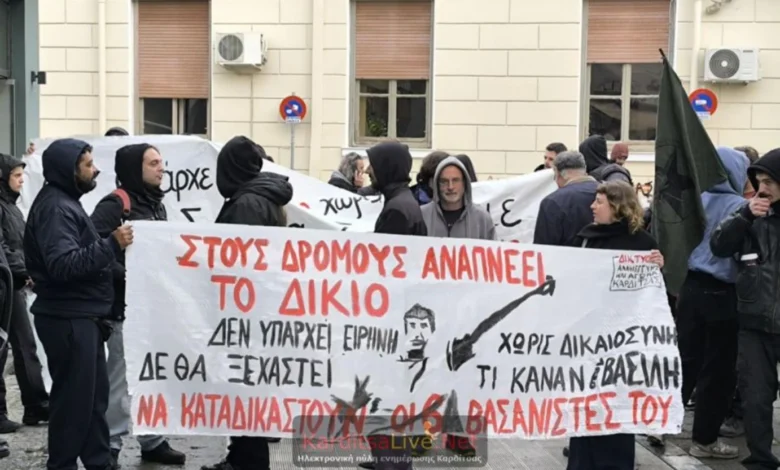 Να σημειωθεί ότι έξω από το δικαστικό μέγαρο πραγματοποιήθηκε συγκέντρωση αλληλέγγυων, οι οποίοι μετά τη διακοπή της δίκης πραγματοποίησαν πορεία στο κέντρο της Καρδίτσας.