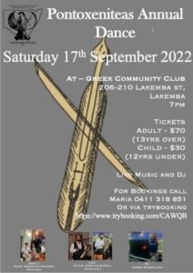 Επίσης από τον Σύλλογο του «ΠΟΝΤΟΞΕΝΙΤΕΑ» Συδνευ, στις 17 Σεπτεμβρίου 2022