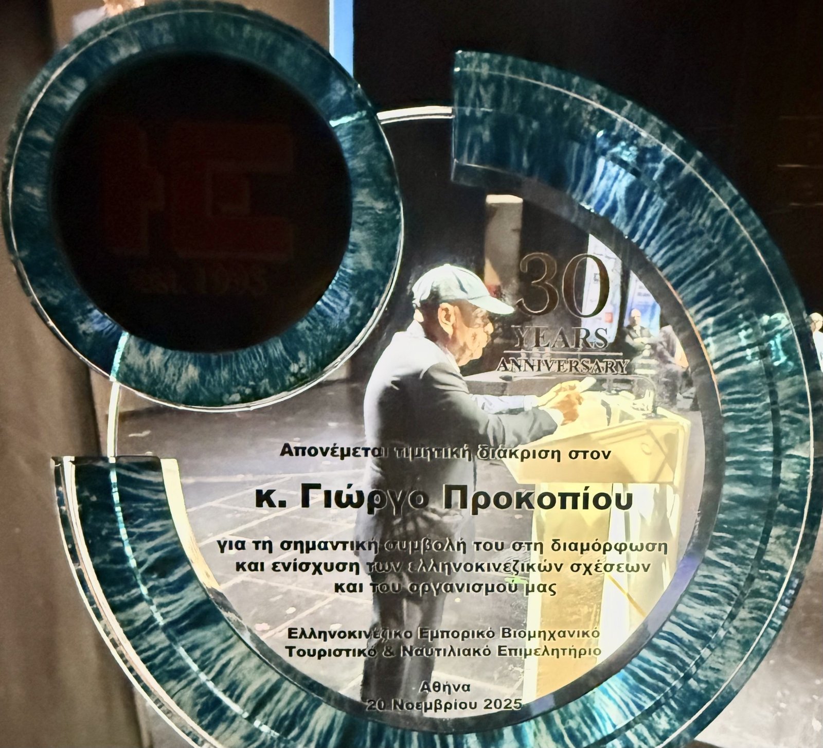 - Το Ελληνο-Κινέζικο Επιμελητήριο γιόρτασε 30 χρόνια και τίμησε τον εφοπλιστή Γιώργο Προκοπίου