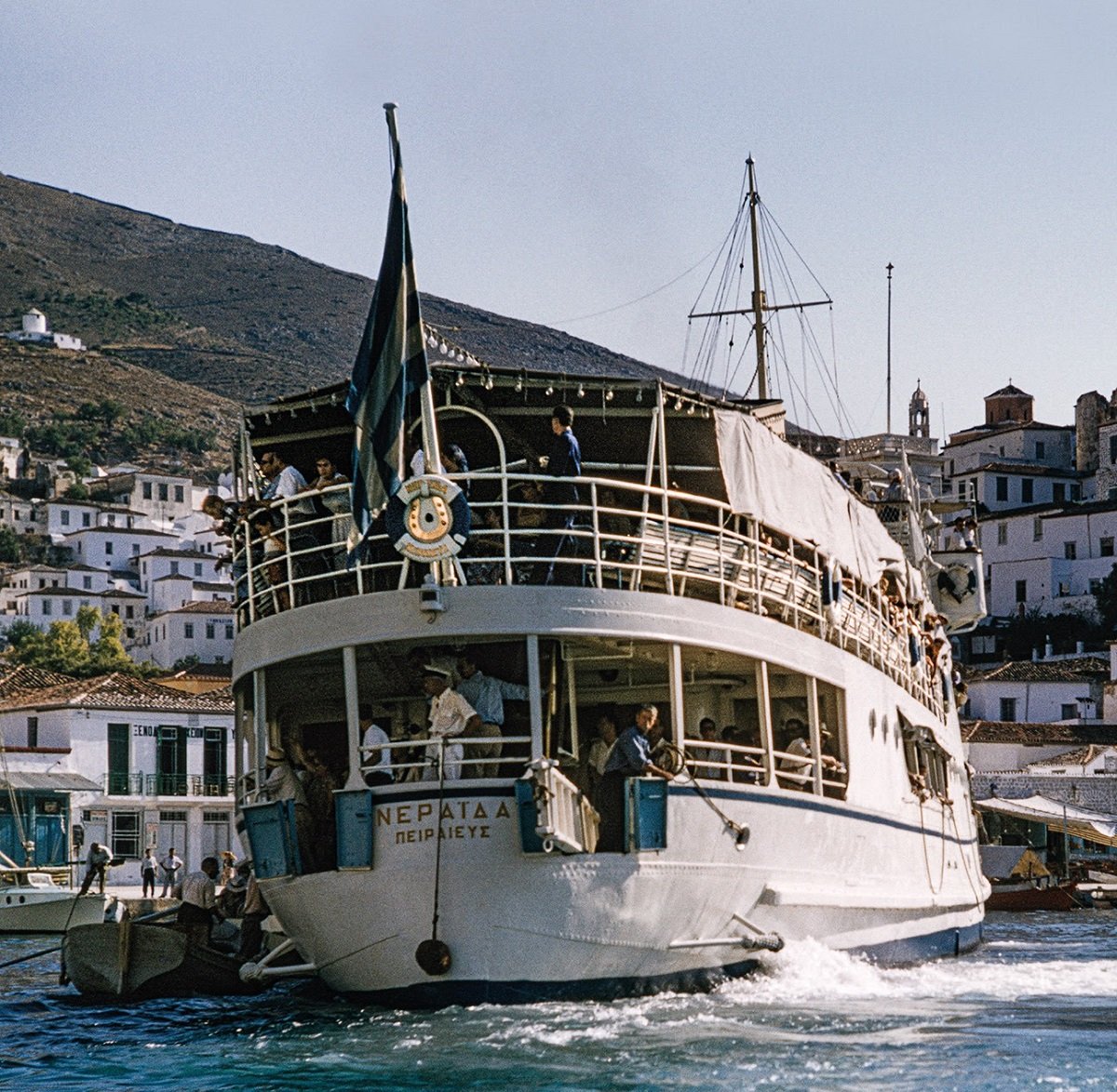 Στις φωτογραφίες του οι χαρακτηριστικές ομορφιές της Ύδρας αναγνωρίζονται αμέσως. Σταθερές άγκυρες στο βλέμμα, το καμπαναριό του Μοναστηριού της Παναγίας, η προτομή του Ναυάρχου Παύλου Κουντουριώτη, ο κυματοθραύστης με πλήθος καΐκια, οι πέτρινες μάντρες. Όσο περισσότερο παρατηρεί κανείς τις φωτογραφίες, τόσο αντιλαμβάνεται γοητευτικές λεπτομέρειες, μαρτυρίες μιας άλλης εποχής, της δεκαετίας του 1950 και των αρχών του 1960: τις εγκαταλειμμένες παλιές πέτρινες αποθήκες του λιμανιού και τα γερασμένα επιβλητικά σπίτια∙ το παλιό κτήριο του Ιστορικού Αρχείου της Ύδρας∙ το «Νεράιδα», το πλοίο-σύμβολο της εποχής∙ τα καφενεία και τα μαγαζιά της προκυμαίας, με τις μακριές ριγωτές τέντες∙ τις χειροποίητες επιγραφές των μαγαζιών∙ τις καθημερινές ασχολίες των βιοπαλαιστών∙ τα μικρά παιδιά που τριγυρίζουν ελεύθερα στο λιμάνι. Tο έγχρωμο φιλμ αποτυπώνει τα χρώματα, το φως του ήλιου αλλά και τις σκιές στους βράχους, τα σπίτια, τα καΐκια, στη θάλασσα, όλες τις ώρες της ημέρας.