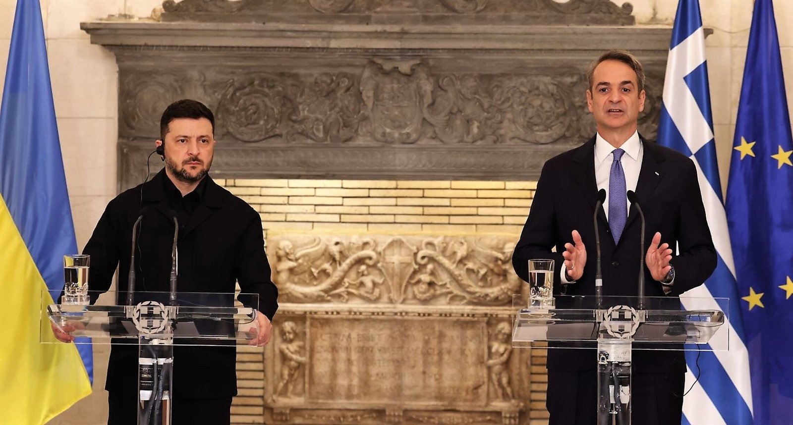 «Θέλω να σε ευχαριστήσω θερμά για την παραγωγική και ουσιαστική μας συνάντηση και πάλι καλωσόρισες στην Αθήνα», είπε ο κ. Μητσοτάκης απευθυνόμενος στον Πρόεδρο της Ουκρανίας.