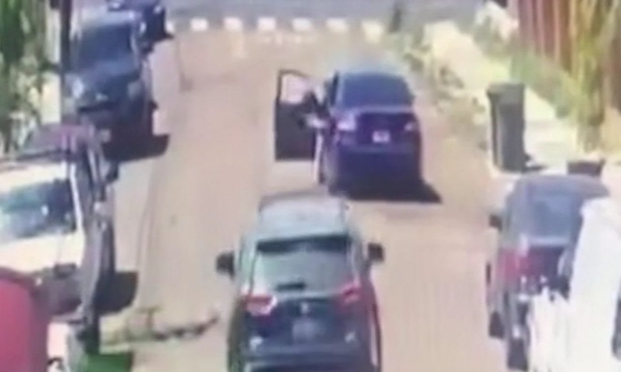 Ο ένοπλος μπήκε ξανά στο μπλε σεντάν πριν αυτό φύγει.