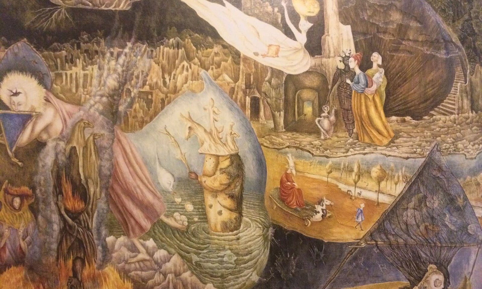 Ζωγραφισμένες δύο χρόνια μετά την άφιξη της Κάρινγκτον στο Μεξικό το 1945, οι ψυχεδελικές σκηνές είναι εμπνευσμένες από τη ζωή του ηγεμόνα των Φράγκων Δαγοβέρτου από τον Οίκο των Μεροβιγγείων, ο οποίος έζησε τον 7ο αιώνα. Το έργο είναι μία εκδοχή του κήπου των επίγειων απολαύσεων του Μπος με υβριδικά πλάσματα, τα οποία φαίνεται να είναι εν μέρει άνθρωποι, εν μέρει ζώα, εν μέρει φυτά και να πραγματοποιούν μυστηριώδεις τελετουργίες.