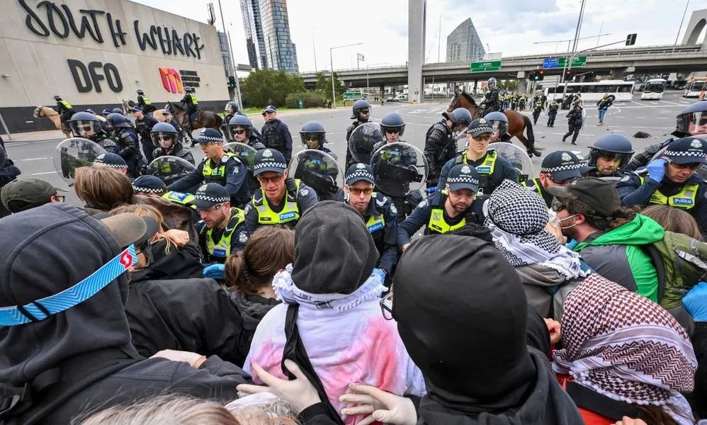Δεκάδες άνθρωποι συνελήφθησαν μετά από συγκρούσεις με την αστυνομία σε αντιπολεμική διαδήλωση στη Μελβούρνη.