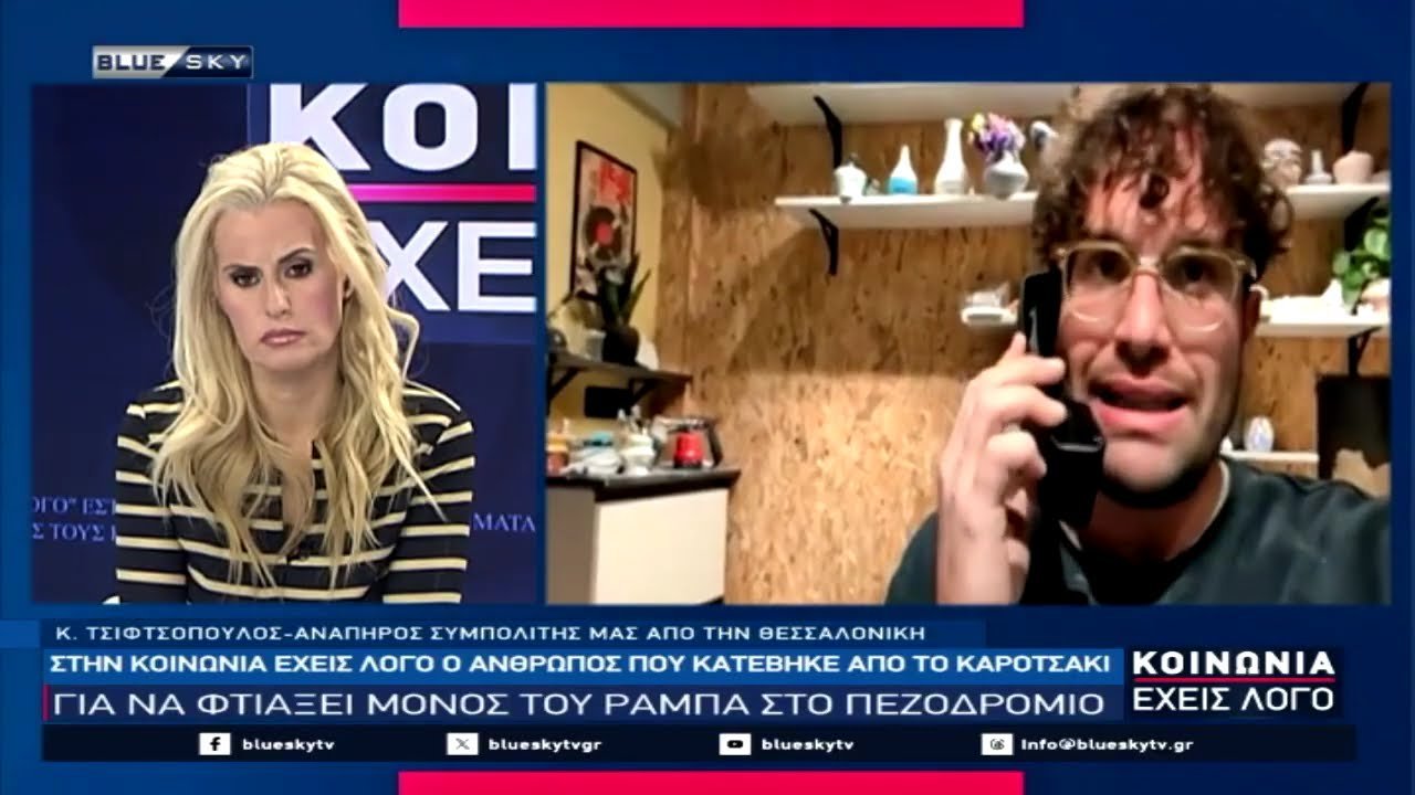 Στην ΚΟΙΝΩΝΙΑ ΕΧΕΙΣ ΛΟΓΟ (12-12-25) με την Μαρία Αραμπατζή ο Κωνσταντίνος Τσιφτσόπουλος ο ανάπηρος συμπολίτης μας από την Θεσσαλονίκη, ο οποίος έγινε γνωστός στα κοινωνικά μέσα από ένα βίντεο που τον δείχνει να κατεβαίνει από το καροτσάκι για να φτιάξει ράμπα σε πεζοδρόμιο.