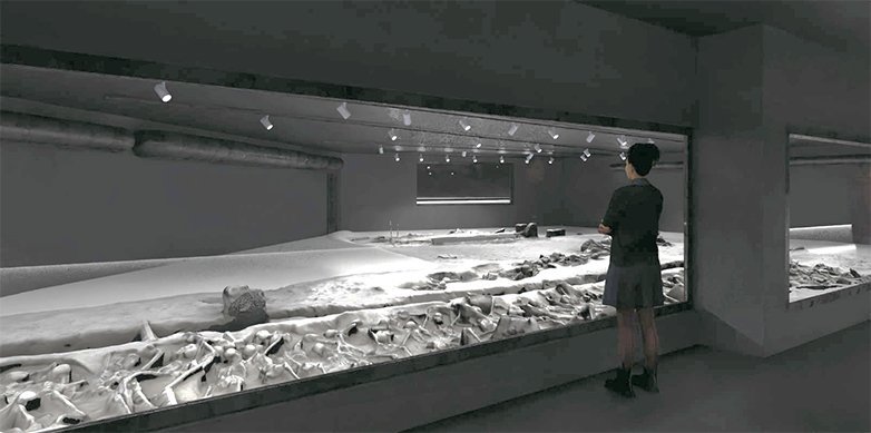 Η μουσειολογική και μουσειογραφική προσέγγιση εξετάζει τον αρχαιολογικό χώρο ως ιστορικό τόπο, εστιάζοντας σε ένα μοναδικό εύρημα που συνδέεται με ένα σημαντικό ιστορικό γεγονός. Η κατά χώραν έκθεση του ευρήματος αποτελεί μια σπάνια περίπτωση στον ελλαδικό χώρο. Βασική αρχή είναι να αποδοθεί η ιστορική σημασία του ευρήματος με σεβασμό προς τους νεκρούς. Το υπό κατασκευή κτήριο ανάδειξης των αρχαιοτήτων καλύπτει 920 τ.μ. περίπου, και έχει διακριτή ταυτότητα και λιτή μορφή. Οι επισκέπτες οδηγούνται καθοδικά προς τον ηµιυπαίθριο κυλινδρικό χώρο που ξεκινά από τη στάθµη του εδάφους και βυθίζεται σταδιακά. Ο αρχιτεκτονικός σχεδιασμός του κτηριακού κελύφους στοχεύει στη δημιουργία ενός χώρου που προσκαλεί τον επισκέπτη να ενηµερωθεί για τα ανασκαφικά ευρήµατα, αλλά και να προετοιµαστεί για την ορθή ανάγνωση της κατά χώραν διατηρημένης οµαδικής ταφής, µέσω της σταδιακής ανακάλυψης της πληροφορίας, αλλά και της κατανόησης της ατµόσφαιρας του χώρου. Στον υπόγειο χώρο, τα σκελετικά κατάλοιπα -σε στάθμη -3.75 μ., θα είναι ορατά από δύο περιοχές, μέσω μεγάλων υαλόφρακτων ανοιγμάτων. Ο χώρος των σκελετών δεν είναι επισκέψιμος από το κοινό, απαιτώντας για την προστασία τους, ελεγχόμενες συνθήκες.
