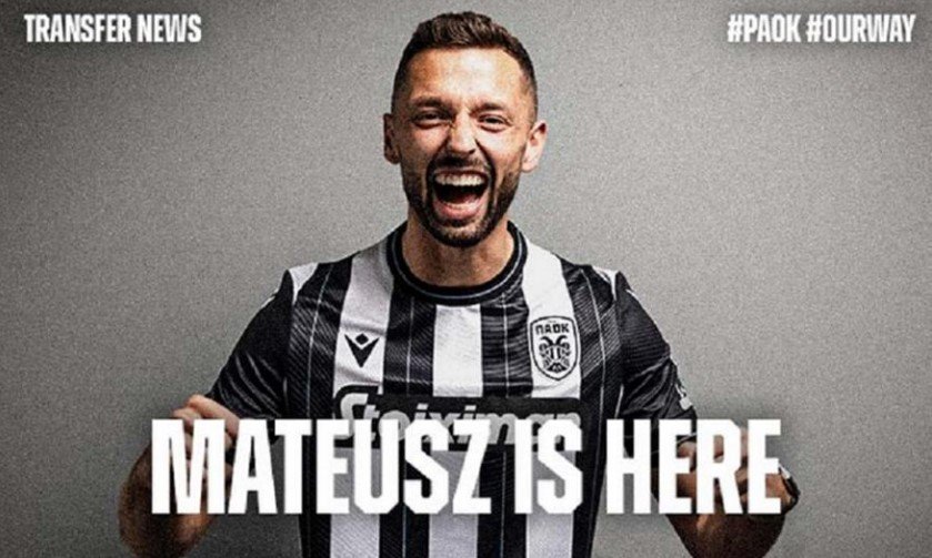 «Η ΠΑΕ ΠΑΟΚ ανακοινώνει την απόκτηση του Ματέους Βιετέσκα από την Κάλιαρι με την μορφή δανεισμού μέχρι το τέλος της σεζόν, με οψιόν αγοράς για το καλοκαίρι. Ο Πολωνός κεντρικός αμυντικός θα φοράει τη φανέλα με τον αριθμό 28.