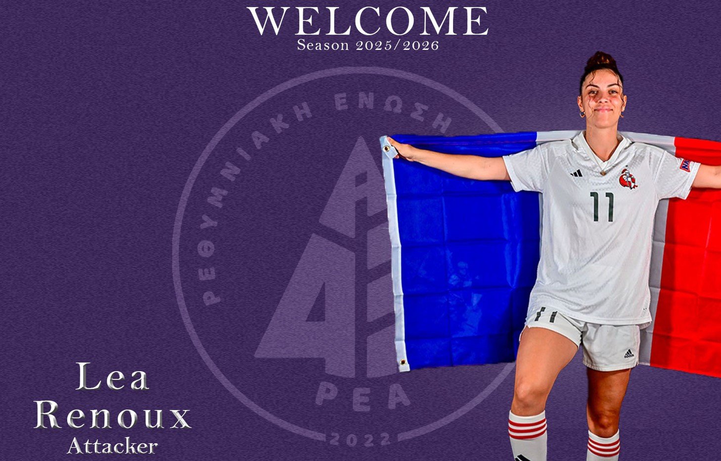 Η Ρ.Ε.Α. ανακοινώνει με ιδιαίτερη χαρά την έναρξη της συνεργασίας της με τη Γαλλίδα ποδοσφαιρίστρια Léa Renoux, ενισχύοντας περαιτέρω το δυναμικό της ομάδας ενόψει της νέας αγωνιστικής περιόδου.