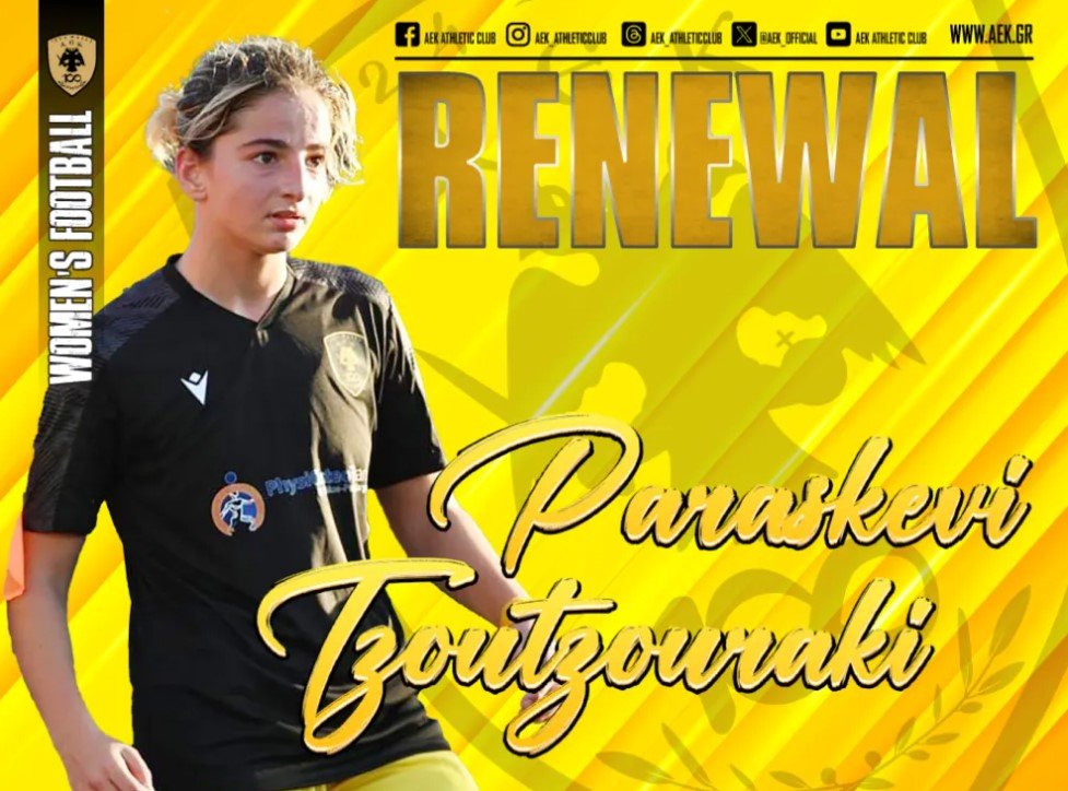 Η 20χρονη (05/01/2004) αθλήτρια θα ενισχύσει και τη νέα σεζόν το τμήμα του Ποδοσφαίρου Γυναικών της ΑΕΚ.