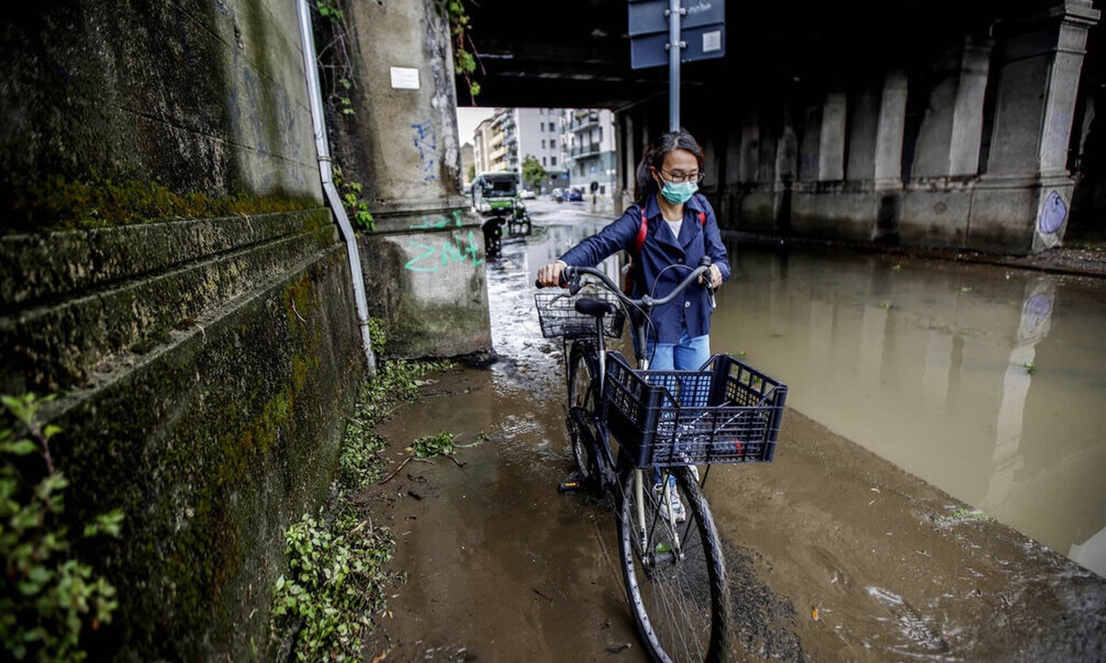 Κακοκαιρία πλήττει από χθες, Τρίτη, το βράδυ την πόλη του Μιλάνου. Εξαιτίας της ασταμάτητης βροχής σε όλη την ιταλική συμπρωτεύουσα, πλημμύρισαν δρόμοι και επιβλήθηκε απαγόρευση της κυκλοφορίας.