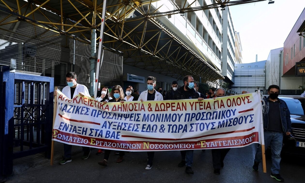 Συγκέντρωση διαμαρτυρίας για τα απογευματινά χειρουργεία στο νοσοκομείο «Ευαγγελισμός».