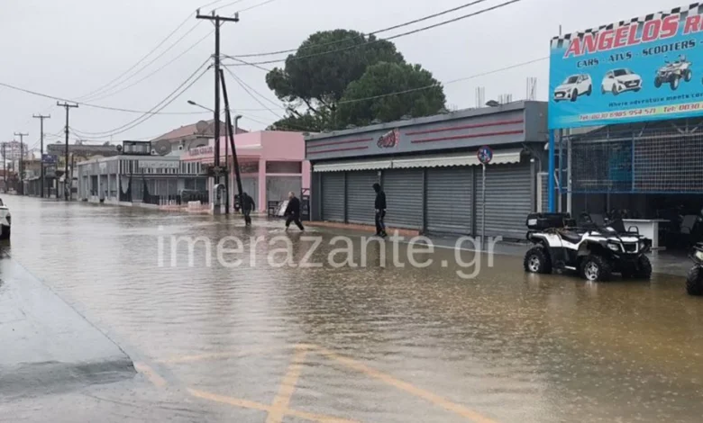 Η κακοκαιρία σάρωσε τη Ζάκυνθο δημιουργώντας προβλήματα σε μεγάλο μέρος του νησιού, καθώς πλημμύρισαν αρκετοί δρόμοι, ενώ εγκλωβίστηκε και κόσμος, με αποτέλεσμα να χρειαστεί επέμβαση της Πυροσβεστικής.