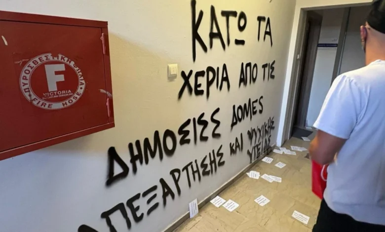 Τρία άτομα ταυτοποιήθηκαν από την αστυνομία για την αναγραφή συνθημάτων με μπογιές στο πολιτικό γραφείο του υφυπουργού Υγείας και βουλευτή της Ν.Δ. Δημήτρη Βαρτζόπουλου, τον περασμένο Ιούλιο, στο κέντρο της Θεσσαλονίκης.