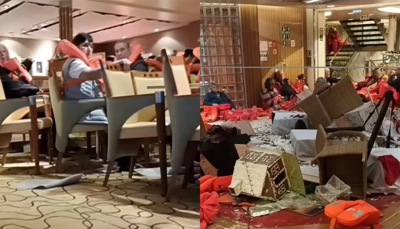 Viral έχει γίνει το βίντεο μέσα από το κρουαζιερόπλοιο «του τρόμου» με τους πανικόβλητους επιβάτες να φορούν σωσίβια και να περιμένουν οδηγίες από το προσωπικό.