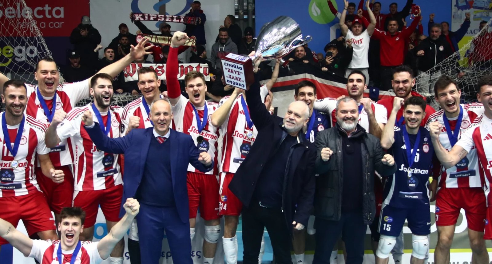Με καρδιά και ψυχή πρωταθλητή, η ομάδα βόλεϊ Ανδρών του Ολυμπιακού ΟΝΕΧ κατέκτησε τον δεύτερο τίτλο της στη σεζόν, μετά το League Cup! Οι «ερυθρόλευκοι» πανηγύρισαν την κατάκτηση του τέταρτου Super Cup της ιστορίας τους, αφού στον τελικό στο Μαρκόπουλο, νίκησαν με 3-2 σετ (25-20, 25-15, 17-25, 24-26, 9-15) τον Παναθηναϊκό, με θρυλική ανατροπή από 2-0, με MVP τον «μαέστρο» Καβάνα και πρώτο σκόρερ τον Ατανασίεβιτς, με 24 πόντους, με 17/30 επιθέσεις, πέντε άσους και δύο μπλοκ (10 ο Τζούριτς, 10 ο Πέριν).